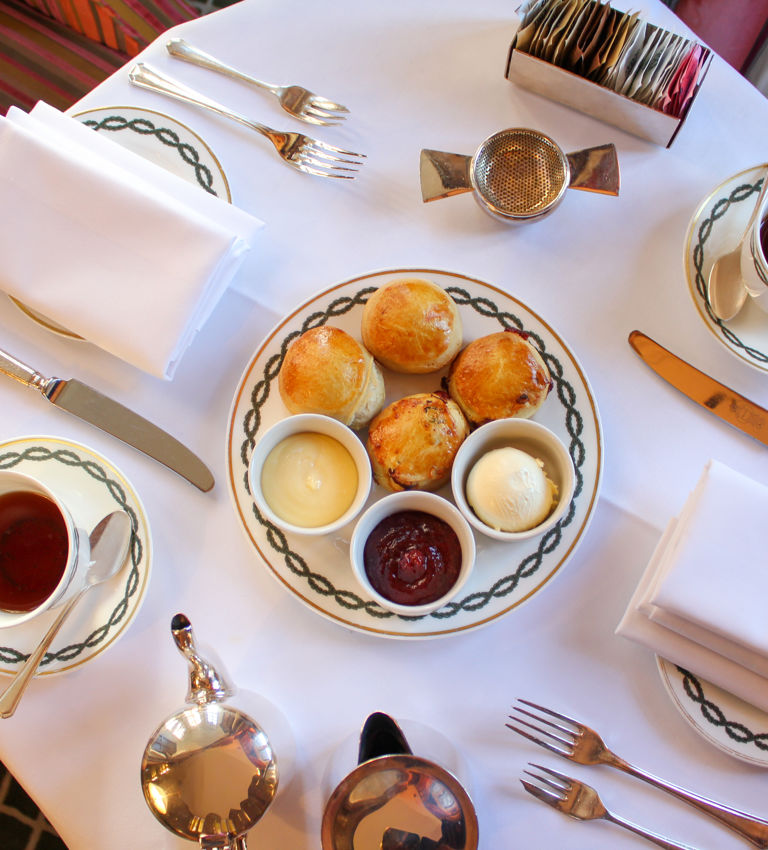 Enjoy a classic cream tea featuring warm, freshly baked plain and fruit scones, served with generous helpings of homemade strawberry preserve and indulgent clotted cream. A timeless treat crafted for slow, savour-the-moment indulgence.