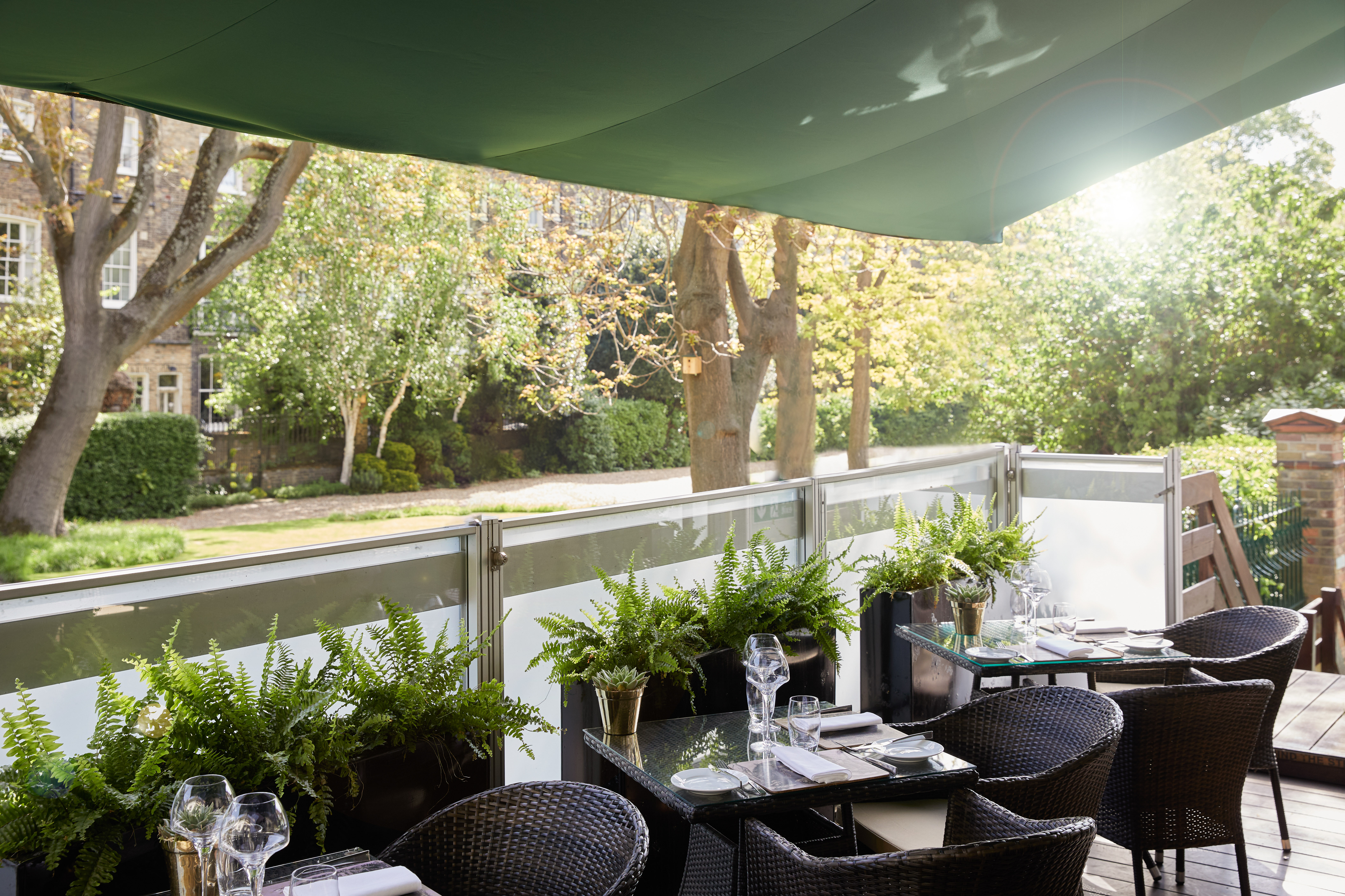 A delightful al fresco setting, overlooking the lush Montague Street Gardens, making it an ideal venue for relaxed and intimate events amidst a picturesque backdrop.