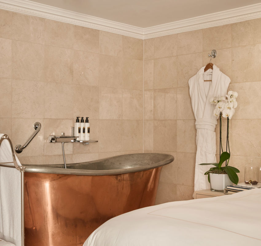 Designed for families and multi-generational stays, The Guv’nor’s Suite offers space, comfort, and luxury in the heart of the city. This two-bedroom suite sleeps up to five guests, featuring a king-size master bed, two twin beds, and a sofa bed on request. Three bathrooms, including a freestanding copper bath and walk-in shower, ensure convenience for all.